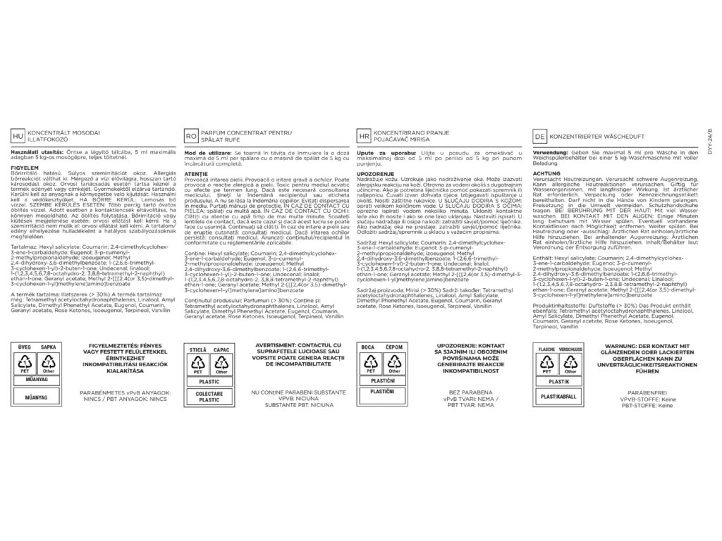 - Vorteil: Das Wäscheparfüm hinterlässt bei richtiger Anwendung und Dosierung keine Flecken und verursacht keine Schäden an den Textilien.